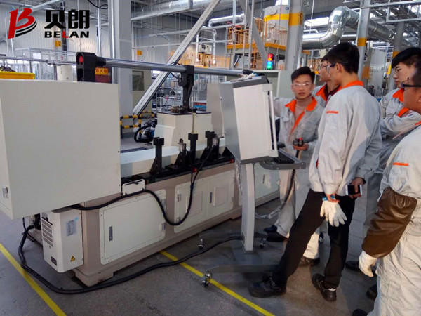 重慶富維安道拓員工學(xué)習(xí)調(diào)試雙頭線材折彎機(jī)BL-2T-12800