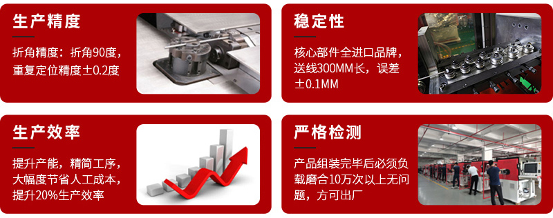 3.履帶送料,具備自動對中功能,不受材料厚度影響,直接使用;同時安裝編碼輪控制,送料精度高于傳統(tǒng)送線輪。