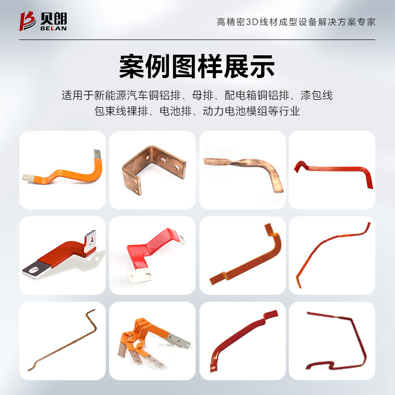 8.該設(shè)備是專門針對銅、鋁排自動折彎成型的一款設(shè)備,適用于生產(chǎn):新能源汽車銅鋁排、母排、配電箱銅鋁排、