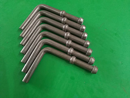 是汽車排氣管掛鉤,也叫消聲器的吊掛,是由墩頭折彎組合機(jī)做出來的。